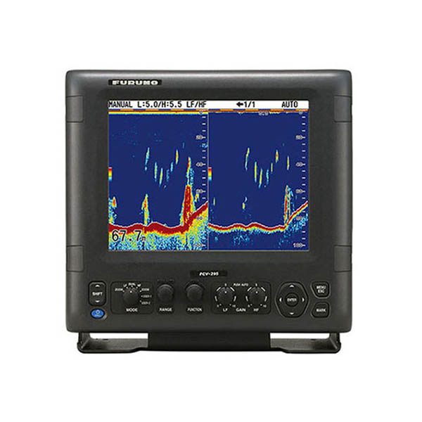 La FCV-295 es una sonda digital a color diseñada para una variedad de operaciones de pesca profesional. Cuenta con una pantalla LCD 10.4 adherida que proporciona una visualización superior incluso bajo la luz solar directa. Puede mostrar los ecos en 8, 16 o 64 colores, y la asignación de colores depende de la intensidad del eco devuelto.