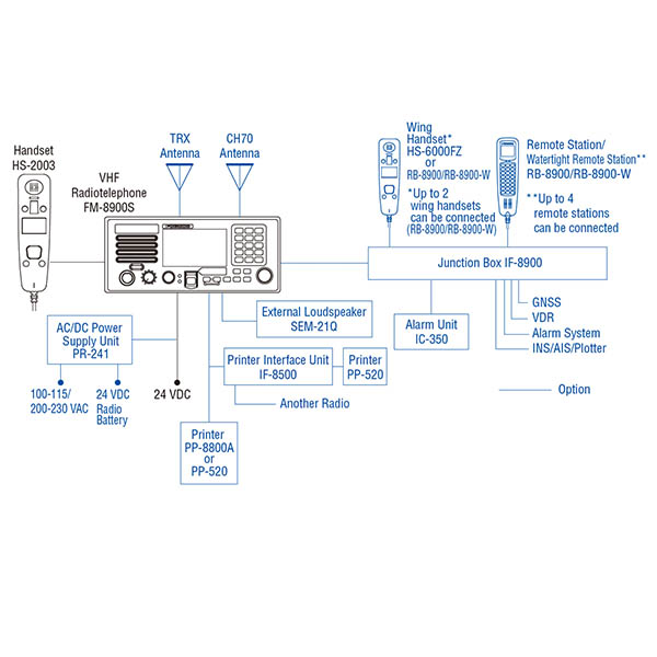 Radioteléfono VHF compatible con GMDSS completo con función DSC Clase A y receptor de vigilancia CH70.